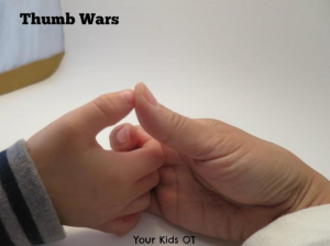 Θα χρειαστείτε έναν φίλο για παίξετε αυτό το παιχνίδι. Κάντε μια γροθιά με το δεξί σας χέρι, «κλειδώστε» τα δάχτυλά σας με εκείνα του φίλου σας και αφήστε τους αντίχειρές σας ελεύθερους. Αγγίξτε τους αντίχειρες ο ένας του άλλου και δοκιμάστε να πατήσετε τον αντίχειρα του φίλου σας χωρίς τα υπόλοιπα δάχτυλα να φύγουν από τη γροθιά!